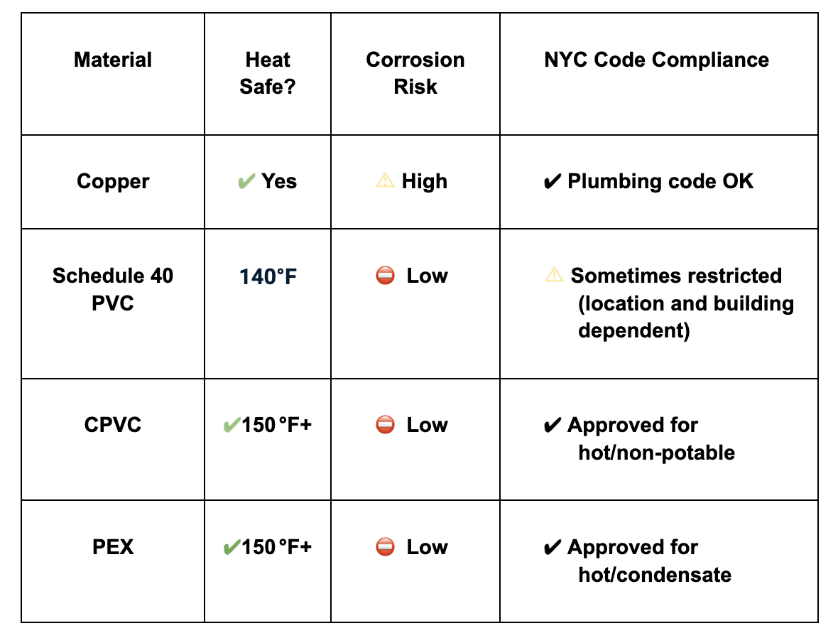 ✅ Inform your plumber and GC about material differences and successful alternatives